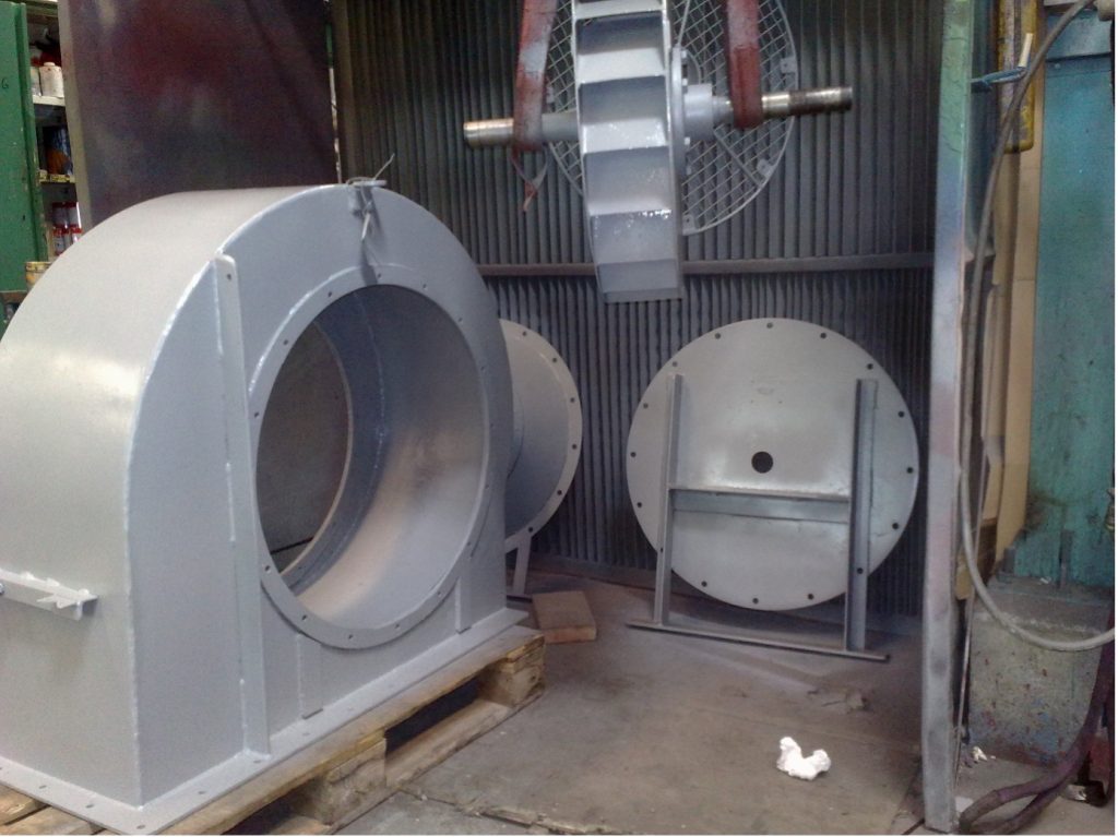 Na de technische werkzaamheden wordt de complete waaier gespoten voor optimale bescherming en een nette afwerking.